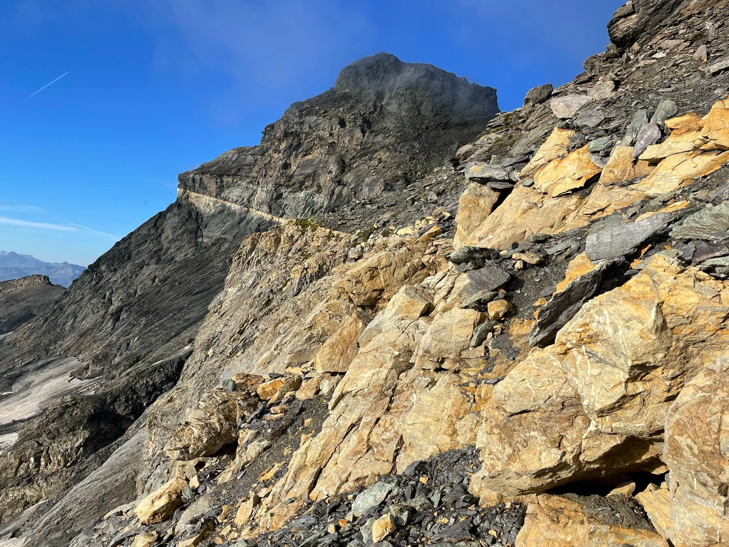 Although the Via Glaralpina ventures into remote, alpine terrain, the technical difficulty of the trail itself never exceeds UK grade 1 scrambling. Metal chains provide assistance on the most exposed, rocky sections. Despite the absence of a trail during the highest stages, the way-marking is always very thorough. Harder parts of the route can be bypassed by taking alternative paths. Beware if attempting the route in early summer or late autumn, as steep snowfields would make it a very serious proposition.